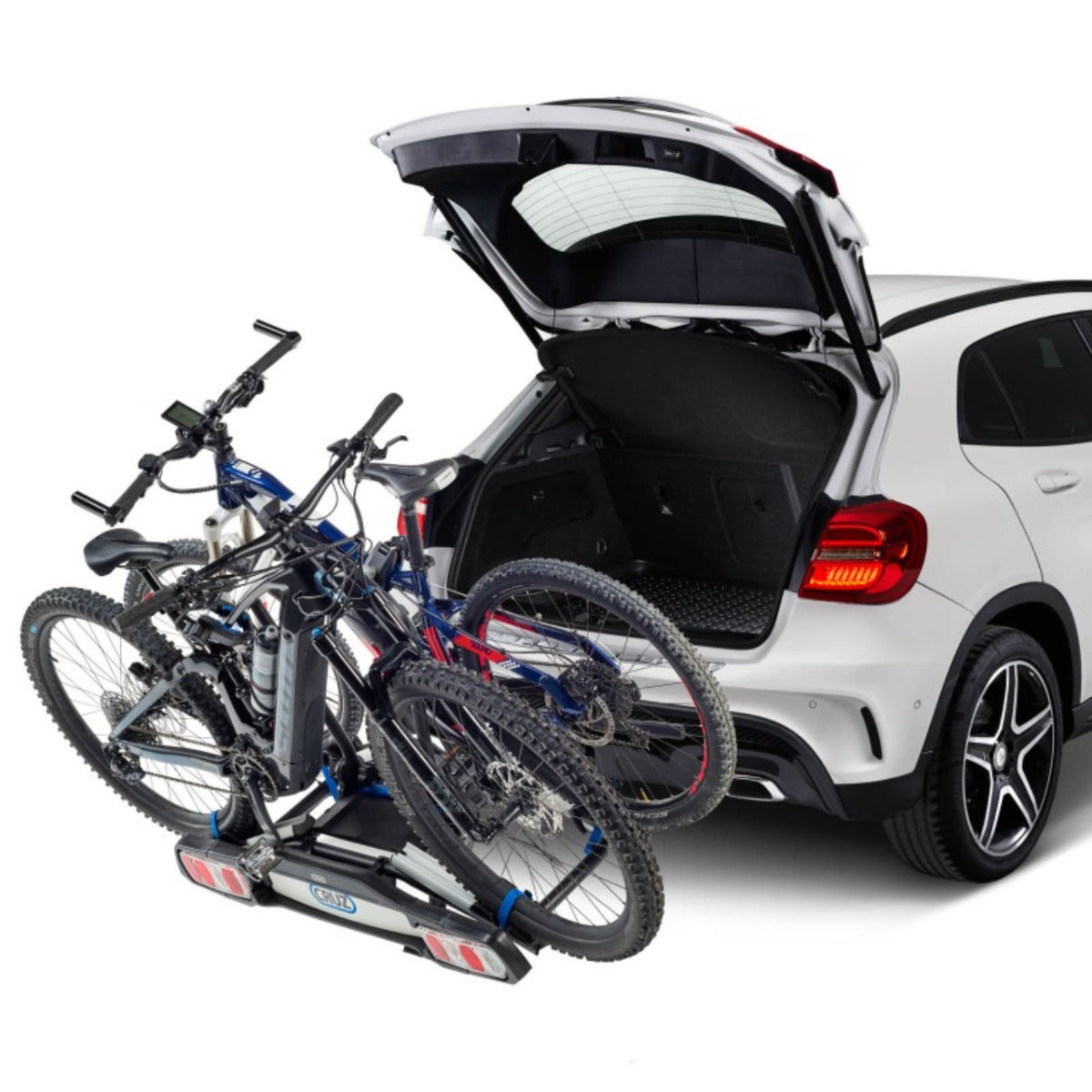 FunctiiSistem de fixare a rotilor cu eliberare rapida, Compatibil cu biciclete electrice, Rabatabil cu bicicletele montate, Priza electrica cu 13 pini, Sistem de prindere rapida cu maneta